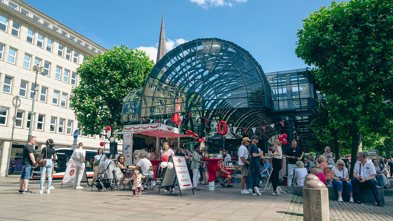 Mit bester Aussicht auf unser schönes Rathaus genießen Sie an sieben Tagen in der Woche unsere hanseatischen Spezialitäten. Ob unsere klassische CultCurrywurst mit CultPommes oder leckere Hamburger CultKnacker mit Senf, Sie haben die Wahl.